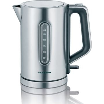 Severinin tyylikkään, ruostumattomasta teräksestä valmistetun, vedenkeittimen tilavuus on 1,7 litraa. 2400 W tehon ansiosta saat kiehuvaa vettä sekunneissa. Selkeä valaistu veden tason ilmaisin vedenkeittimen molemmilla puolilla, mikä mahdollistaa sujuvan ja helpon uudelleentäytön. Suuren kannen aukon ansiosta vedenkeitin on helppo pestä ja vettä on kätevä täyttää uudelleen.