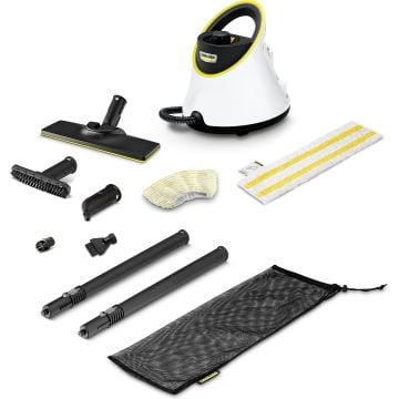 Kompakti ja kevyt SC 2 Deluxe -höyrypesuri tarjoaa kaksivaiheisen höyryn säädön, jolla höyryn voimakkuus voidaan sovittaa pinnan ja lian tasoon. Perusteellinen puhdistus Kärcher höyrypuhdistimella poistaa yleisimpiä kotitalouksien bakteereita tyypillisiltä kovilta pinnoilta - täysin ilman kemikaaleja ja vahvoja puhdistusaineita. SC 2 Deluxe näyttää käyttötilan innovatiivisen valaistun LED-renkaan avulla. Lisävarusteet voidaan säilyttää tarvikepussissa. Kätevän tarrakiinnitysjärjestelmän ansiosta lattianpuhdistusliina voidaan kiinnittää lattiasuulakkeeseen nopeasti ja helposti ja irrottaa uudelleen kätevästä lenkistä koskematta likaan. Erilaisten tarvikkeiden avulla laatoitukset, liedet, liesituulettimet ja jopa pienimmät raot puhdistetaan hygieenisesti, ja sitkeäkin lika voidaan poistaa luotettavasti.