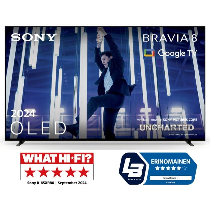 Esittelyssä BRAVIA 8 OLED 4K HDR -televisio, joka tarjoaa elokuvamaista kuvaa ja ääntä sekä esteettistä kauneutta.