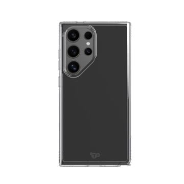 Samsung Galaxy S24 Ultra puhelimelle suunniteltu Evo Clear suojakuori on läpinäkyvä kotelo, jossa on biologisesti hajoava muotoilu, 3,6 metrin iskunkestävyys ja tunnusomainen UV-kestävä viimeistely.