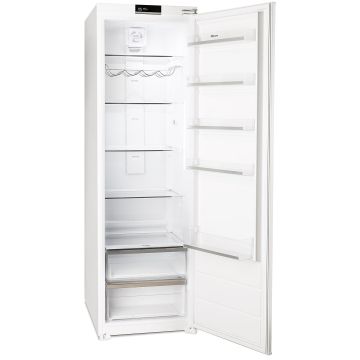 Täysin integroitava jääkaappi, energialuokka E. LED-kaksoissivuvalo, vihanneslaatikko teleskooppikiskoilla. Kalusteoven asennus liukukiskoilla.