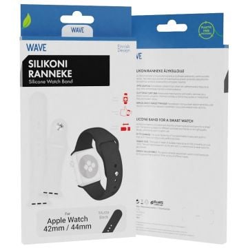 Wave Silikoniranneke on kulutusta kestävä ja tyylikkään pelkistetty vaihtoranneke älykellolle. Ranneke sopii moneen eri käyttötarkoitukseen ja kestää laadukkaiden materiaaliensa ansiosta loistavasti kovempaakin käyttöä. Tämä ranneke on yhteensopiva Apple Watch (42mm ja 44mm) älykellojen kanssa. Ranneke on väriltään musta.