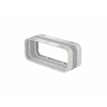 Palamattomasta vahvasta polypropeenista valmistettu kanaviston joustava ja tiivis yhdistäjäosa litteille putkiosille. Helppoa ja tukevaa putken liittämistä varten liitososan molemmissa päissä on tuplatiivisteet.