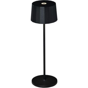 Positano pöytävalaisin tyylikästä mustaa alumiinia, joka sopii maniosti esimerkiksi juhlapöydän valaistukseksi vaikka lähellä ei olisi pistoketta. USB-ladattava sisäisellä akulla, joka kestää 9 tunnin verran valaisua. Himmennettävä, 2700K/3000K värilämpötila, suojausluokka IP54.