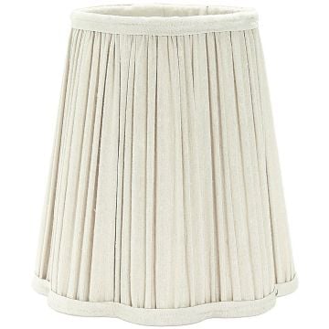 Siv lampunvarjostin, jossa rypytetty silkkityylinen kangas ja vuorattu samanvärisellä puuvillakankaalla. Varjostimen alareuna omaa aaltoilevan muodon, joka luo mukavan valon virtauksen valonlähteestä ja on helppo sovittaa eri lampunjalkojen kanssa. Varjostimessa on rengaskiinnike E27-kantaan.