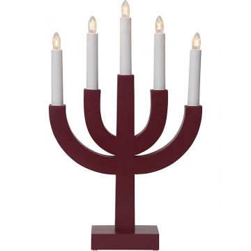 Siisti ja helposti sijoitettava jouluinen kynttelikkö, jossa kauniin punainen puinen runko sekä 5 LED-valonlähdettä E10-kannalla ja enintään 3 W teholla. Helppo sijoittaa, koska se on kooltaan pieni. Luo upean joulutunnelman sekä ikkunassa että huoneen sisällä esimerkiksi hyllyllä tai lipaston päällä.