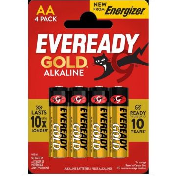 EVEREADY Gold® on luotettava ratkaisu, joka tarjoaa virtaa sinun ja perheesi jokapäiväisiin virrantarpeisiin. EVEREADY®-paristot ovat tarjonneet luotettavaa kannettavaa virtaa vuodesta 1896 lähtien. Pakkaus sisältää 4 kpl AA-paristoa.