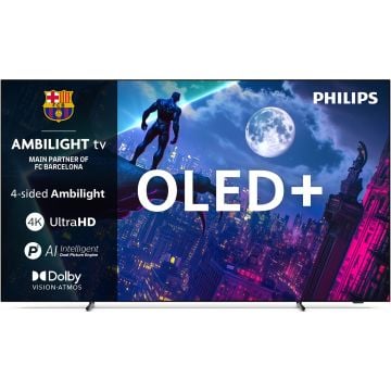 Tyylikäs Philips OLED+-televisio on niitä varten, jotka haluavat nauttia kirkkaimmasta ja todentuntuisimmasta kuvasta, sekä nelisivuisen Ambilightin verrattomasta mukaansatempaavuudesta.