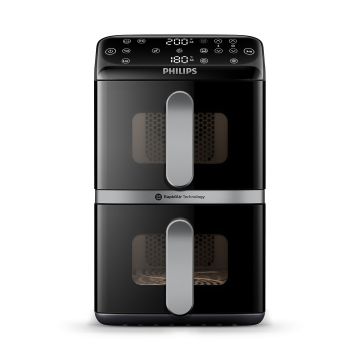 Rapid Air -teknologian ansiosta kuuma ilma kiertää tasaisesti ruoan ympärillä. Näin saat rapean pinnan ja mehukkaan sisuksen – ilman että ruokaa tarvitsee upottaa öljyyn. Voit valmistaa ruokaa jopa 90 % vähemmällä rasvalla verrattuna perinteiseen friteeraukseen. Mitä se tarkoittaa käytännössä? Sama herkullinen maku, mutta kevyempi vaihtoehto. Lisäksi 2750 W teho varmistaa, että laite toimii nopeasti ja tehokkaasti.