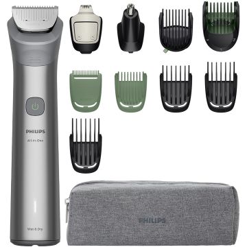Trimmerissä on 11 työkalua, joilla voit siistiä ja muotoilla partakarvat, leikata hiukset, ajella vartalokarvat ja hoitaa kaikki trimmaustarpeesi kätevästi.