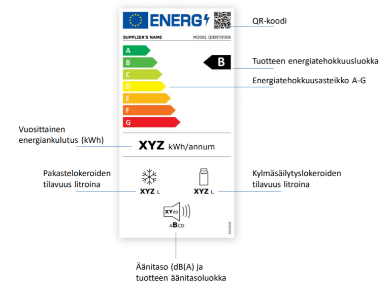 Energialuokka perustuu laitteen vuosittaiseen energiankulutukseen standardoiduissa testioloshteissa, ja se löytyy pakkauksesta tai tuoteselosteesta. Esimerkiksi A-luokan jääkaappi kuluttaa jopa 36 % vähemmän sähköä kuin vertailuluokan C laite. Vastaavasti G-luokan laite saattaa kuluttaa yli kaksinkertaisesti C-luokan laitteen kulutuksen. Useimmat uudet jääkaapit ja pakastimet sijoittuvat tällä hetkellä asteikon keskivaiheille (esim. D–F), koska asteikkoon jätettiin tilaa tulevaisuuden entistäkin tehokkaammille malleille.