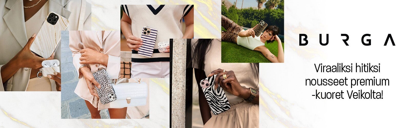 Koteloiden lisäksi saat Veikon valikoimasta ostettua myös kestävät suojakuoret ja näytönsuojat. Suojakuoret tuovat lisäpitoa kännykän käsittelyyn ja jos se pääsee kuitenkin putoamaan suojaa kuori sitä vahingolta. Ja näytönsuojat pitävät huolta ettei iPhonen tai Galaxyn näyttö hajoa ensimmäiseen pudotukseen tai tahriinnu sormenjäljistä. Nämäkin löydät niin valmistajien alkuperäisinä valmisteina kuin Waven ja Docoverin laatutuotteina.